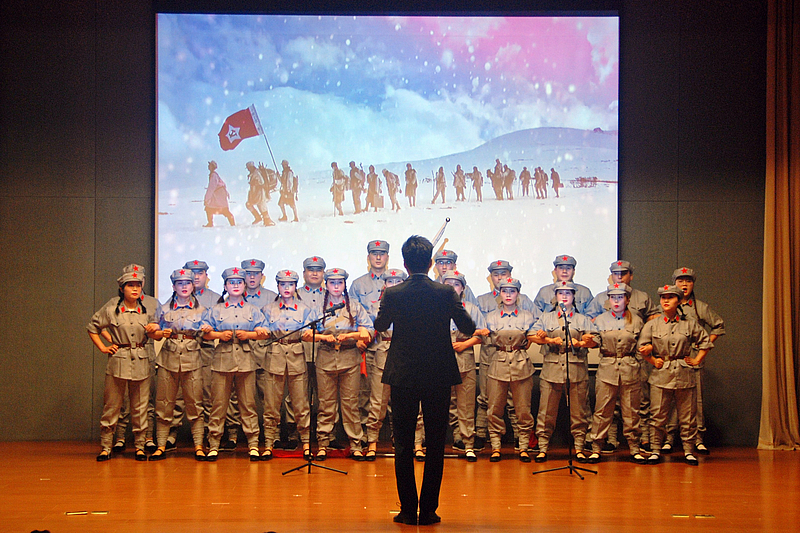 近兩個(gè)多小時(shí)10余個(gè)節(jié)目輪番上演,現(xiàn)場(chǎng)高潮迭起,精彩不斷。演員們以?shī)^進(jìn)的姿態(tài)、飽滿的熱情通過(guò)演唱、舞蹈、朗誦及相聲等多樣化的形式帶領(lǐng)大家回顧了黨苦難輝煌的艱辛歷程、崛起騰飛的發(fā)展之路及偉大復(fù)興的歷史進(jìn)程,表達(dá)了對(duì)黨和祖國(guó)母親的熱愛(ài),傳遞了堅(jiān)定不移跟黨走的信念,凝聚起奮進(jìn)新時(shí)代、啟航新征程的精神動(dòng)力。