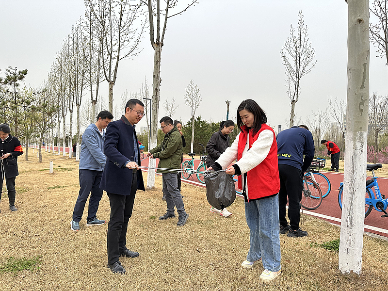 活動以“主題黨日+低碳騎行、實地調研、志愿服務、參觀學習”的形式進行。全體干部員工沿灃河綠道開展近20公里的往返騎行體驗,結合慢車大比拼、自行車障礙賽等趣味游戲,實地深入了解灃西新城河道灘面日常管護、中小修及應急搶險項目運維現狀,并針對現存問題提出解決方案,為后續進一步做好各項目運維管理、更好服務轄區群眾奠定基礎。隨后,全體干部員工在沿途開展了垃圾清理學雷鋒志愿服務,手拿夾子等清潔工具,將沿途道路兩旁的煙頭、白色垃圾、雜物等一一清除。最后集體參觀了灃河(文教園段)濕地生態公園,學習公園設計做法及運維現狀,圍繞生態修復和城市修補問題以及“大公園,微旅游”的運營模式展開討論,有效發散思維,激發靈感,讓主題黨日變成了一堂生動的培訓課堂。