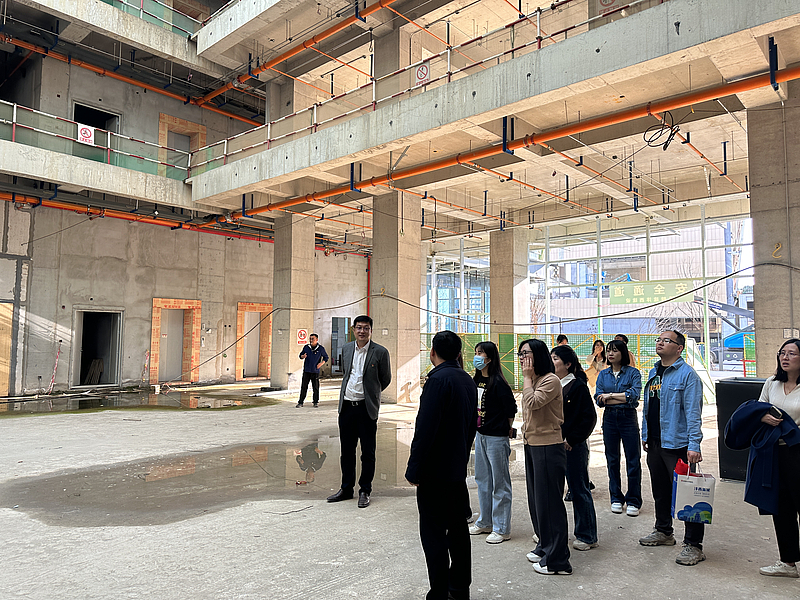 活動中,全體人員前往秦創原生態科創島城市規劃展廳,聽取講解員介紹秦創原生態科創島的整體規劃、產業配套、建設進展等情況,集中觀看項目建設最新進度視頻短片;接著參觀秦創原生態科創島沙盤模型,深入了解項目業態分布、建設進展及載體招商等情況。隨后,雙方實地調研5單元6、8號樓項目現場,了解目前項目建設進展情況,雙方圍繞新時代人才隊伍建設、科創載體招商工作等重點內容開展交流研討。