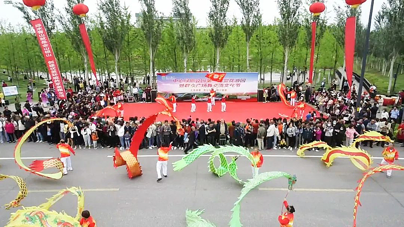 園內枝頭梢末,花兒們正鉚足勁兒爭相吐艷,在交流表演現場,廣場舞、太極拳、舞龍隊的精彩表演引得陣陣喝彩和熱烈掌聲。