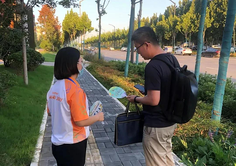 在一次志愿服務(wù)期間,她看到一名農(nóng)民工師傅下班路過西部云谷二期站崗?fù)r(shí),想要上前咨詢但又滿臉羞澀遲遲沒有開口,王寶花主動(dòng)迎上前詢問情況,原來是農(nóng)民工師傅想為他的孩子買一個(gè)十四運(yùn)紀(jì)念品。她主動(dòng)留下這名群眾的聯(lián)系方式,并告知其購買地點(diǎn),同時(shí)為他贈(zèng)送了十四運(yùn)會(huì)紀(jì)念扇,并約定待志愿服務(wù)結(jié)束后可以將自己的志愿服裝送一件給小朋友。樸實(shí)的笑容綻放在師傅的臉上,他連連說道:“你們是優(yōu)秀的志愿者,給咱西安爭光咧!”