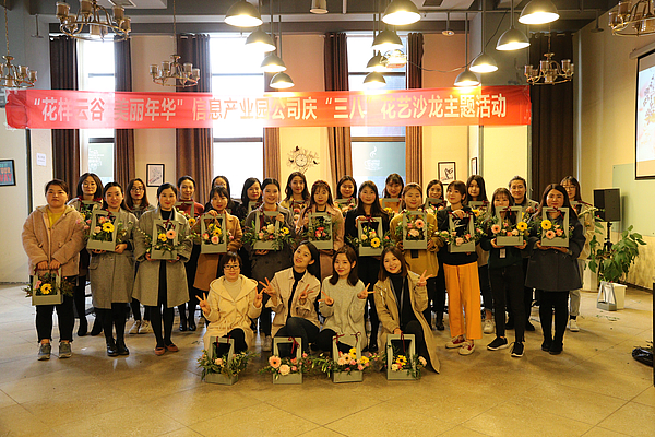 為慶祝“三八”國(guó)際勞動(dòng)?jì)D女節(jié),進(jìn)一步豐富女職工的精神生活,陶冶性情、提高藝術(shù)修養(yǎng),3月8日上午,信息產(chǎn)業(yè)園公司組織全體女職工開展了以“花樣云谷、美麗年華”為主題的“慶3·8”花藝沙龍主題活動(dòng)。