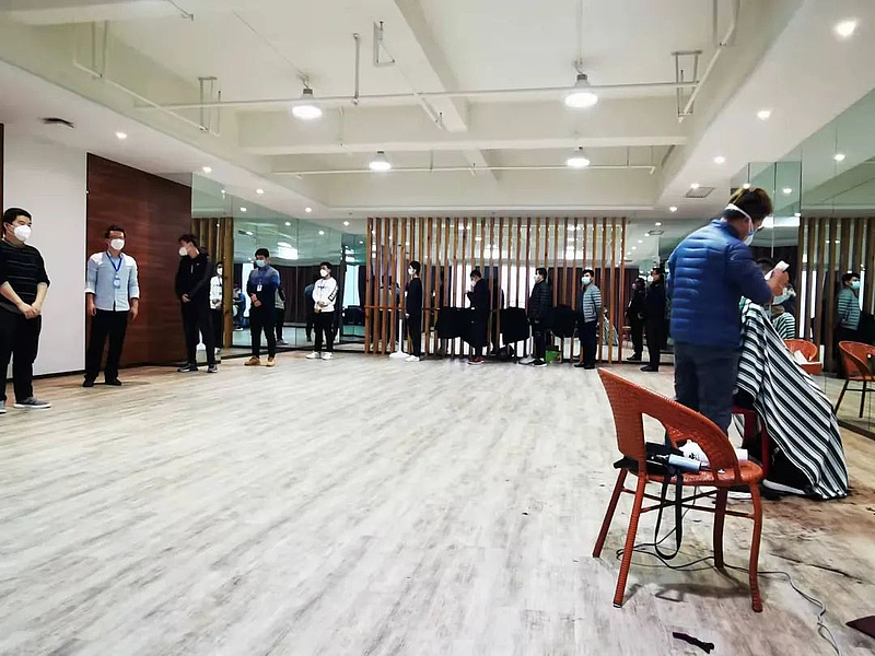 “把理發師請到園區為我們免費理發,公司又辦了一件實事,剪完之后感覺整個人都精神多了,心情也好了,我們更有信心戰勝此次疫情。”一位剛剛理完發的一線防疫人員這樣說道。