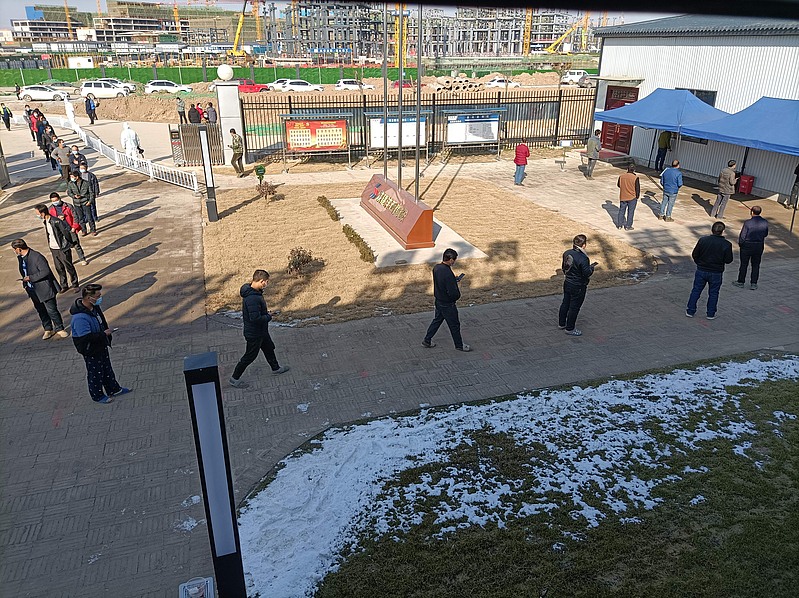 12月29日凌晨2點多,周瑞杰仍然帶領防疫一線的同志們緊急開展布置檢測現場、安排專人對接、清點防疫物資等各項工作。早上7點,東方欲曉,項目核酸檢測點前期各項準備工作一切就緒,周瑞杰臉上終于露出了欣慰的笑容,與同志們連夜作戰了近5個小時未休息的他卻說,“我辛苦些沒什么,咱不能讓項目上的兄弟們遭罪!”