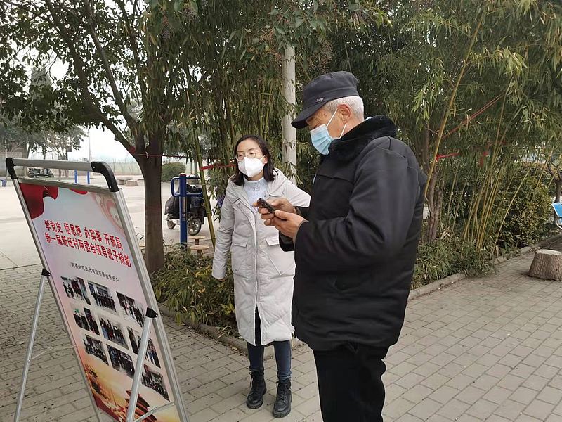 魏廣樂在曹寨村協助維護現場秩序