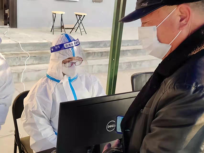 早上5點,天還未亮時,劉恒希顧不上吃早飯便啟程前往客省莊村,到達后他便與同事開始了緊張而忙碌的核酸檢測秩序維護工作,在新一輪核酸檢測完成后,他又立刻投入到“敲門行動”中,挨家挨戶上門詢問村民核酸檢測情況、是否有生活困難等。“每次執勤工作基本上是從早上7點開始,一直忙到下午6點,要對所有村民當天的核酸檢測情況和有無生活困難進行一一核實,一定做到不漏一人。”劉恒希說到這十幾天的工作時,他覺得完成對所有村民進行實名登記和核酸檢測工作,并如實準確地上報統計信息,是這場與病毒較量的關鍵環節,對此他絲毫不敢怠慢每一項工作。