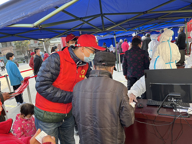 疫情發(fā)生以來,下沉干部克服困難、下沉一線,在新城大原村積極配合開展疫情防控工作,錄入核酸檢測人員信息,維護核酸檢測點現(xiàn)場秩序,現(xiàn)場測溫掃碼,引導分流待檢群眾,幫助特殊群體登記檢測,提醒群眾有序排隊、間隔1米距離、做好個人防護、提前打開一碼通等各項工作,一個個忙碌的身影、一遍遍溫馨地提醒,無不彰顯著新時代黨員干部為民服務的真摯情懷。