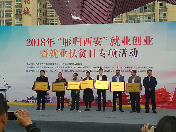 10月16日,陜西灃西物業(yè)管理有限公司作為西咸新區(qū)扶貧基地代表參加2018年“雁歸西安”就業(yè)創(chuàng)業(yè)暨就業(yè)扶貧日頒獎活動,被授予“西安市就業(yè)扶貧基地”榮譽稱號。