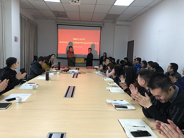 會上,對公司2018年度先進部門、優秀員工進行表彰,并與各部門負責人簽訂了2019年度目標責任書。