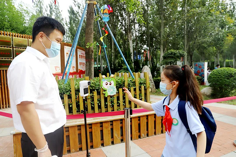 為了迎接同學(xué)們“回家”,西咸灃西第一小學(xué)、西咸新區(qū)灃西新城實(shí)驗(yàn)學(xué)校,早早就做好了準(zhǔn)備,防疫演練、校園消殺、常態(tài)防疫不放松,學(xué)生們按照引導(dǎo)佩戴口罩,一米間距,體溫檢測,整齊有序進(jìn)入校園。