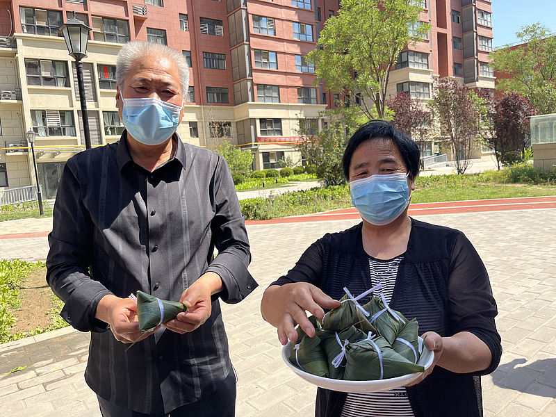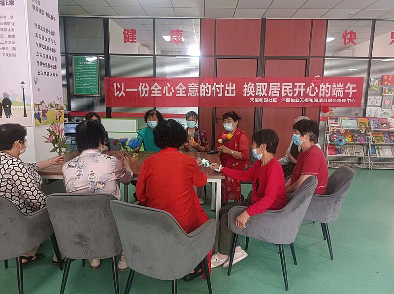 活動結束后,項目中心的工作人員將包好的粽子送到了園區孤寡老人的手中,并將提前準備好的香包分發給每位住戶,園區業主一起嘮著家常,一副其樂融融的景象。