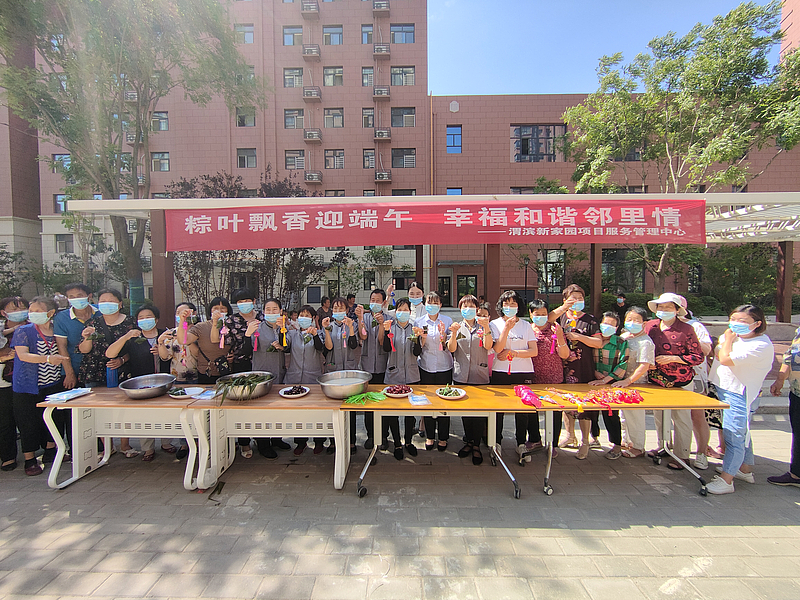 在渭濱新家園的園區中,小區的業主和物業的工作人員一起卷粽葉,裝糯米,加上幾顆紅棗,左纏右繞,再把繩子系緊,一個個馨香四溢的粽子就包成了。這是渭濱新家園項目中心開展的“粽葉飄香迎端午,幸福和諧鄰里情”包粽子活動?;顒又?,大家你追我趕比速度、比顏值,活動有說有笑、其樂融融。 隨后,項目中心工作人員將包好的粽子、香囊送給周邊的老人、行動不便的居民,寓意把節日的溫暖和平安帶到他們身邊。