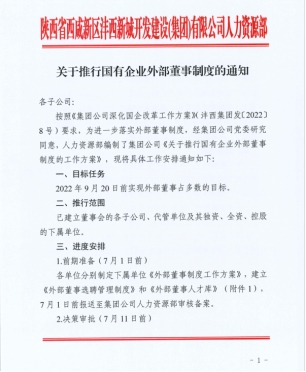 全力推行外部董事制度,制定集團公司外部董事制度工作方案和選聘管理制度,實現11家子企業外部董事占多數的任務,進一步規范董事會構成。探索市場化經營機制,100%推行經理層任期制和契約化管理,20家企業56名經理層全員簽訂聘任協議、任期及年度經營業績責任書,充分激發領導干部干事創業精氣神。