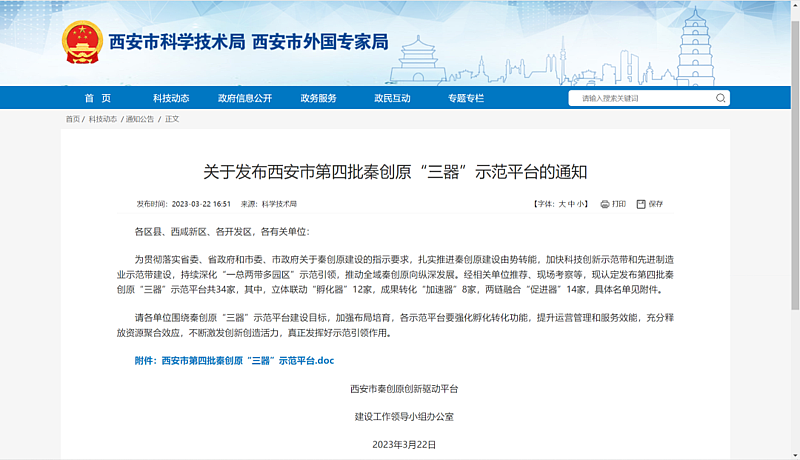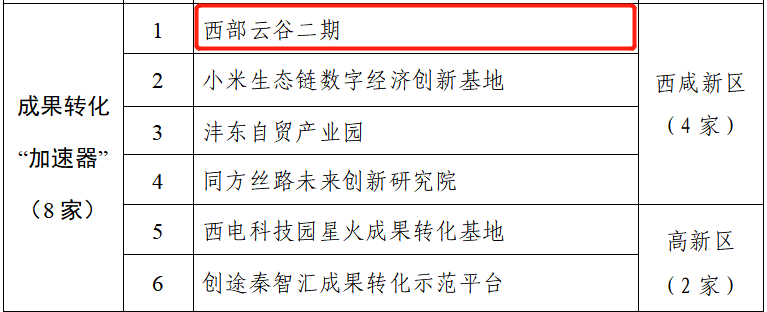 近日,西安市科技局發布西安市第四批秦創原“三器”示范平臺名單。灃西集團西部云谷二期作為成果轉化“加速器”成功入選。