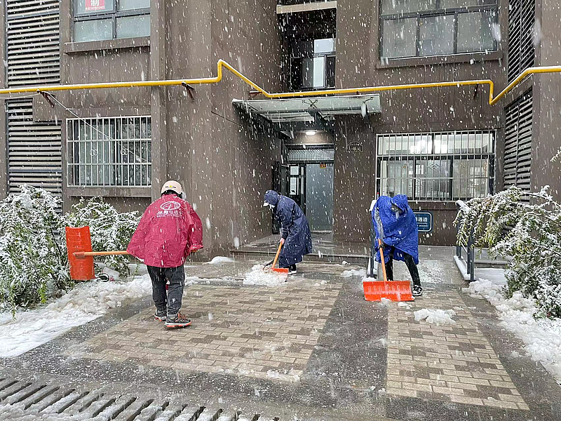 雪景雖美,但出行不易。服務(wù)公司組織人員重點(diǎn)對(duì)小區(qū)、園區(qū)、學(xué)校主干道、樓棟門口、地庫(kù)入口等區(qū)域進(jìn)行清掃,檢查搶修相關(guān)設(shè)施設(shè)備,志愿者們主動(dòng)參與,及時(shí)清除屋頂、雨水管、排水溝等積雪,協(xié)力保障業(yè)主、師生出行安全暢通。大家分工明確,配合默契,堅(jiān)守在除雪一線,展現(xiàn)出了物業(yè)人的擔(dān)當(dāng)作為。