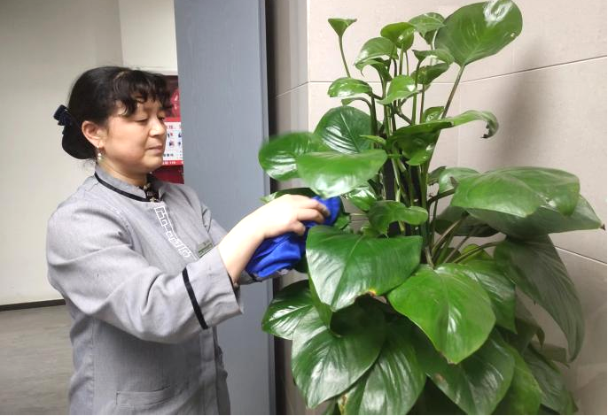 唯有熱愛工作,才能將工作做好、做精。作為一名保潔,張美玲沒有驚天動地的偉業,沒有轟轟烈烈的壯舉,只有那堅定的身影,用心清掃著園區每一個臺階、每一個角落,用情擦拭著每一塊玻璃、每一個窗臺,用責任清理著每一塊“牛皮癬”,每一桶垃圾。2021年11月,張美玲在清理裝修樓層過程中接觸到不明裝修物料,導致全身皮膚紅腫痛癢,她默默承受著身體的不適,堅持上崗,直到班長巡查工作時發現她脖子處的異樣,她不想讓別人擔心,反而寬慰起別人笑著說道:“么事么事,我回去涂點藥過兩天就好了”。在日常工作中,張美玲每天穿梭在樓層各辦公室進行衛生清潔,把本職工作做好后,也會主動幫助其她同事。她積極向上、熱愛工作的精神感染著身邊的每一個人。
