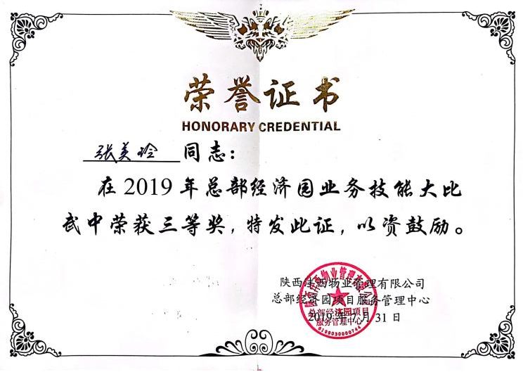 越努力越幸運。張美玲在2019年7月總部經濟園項目業務技能大比武中榮獲三等獎、2020年8月總部經濟園項目第二屆崗位技能比武中榮獲三等獎、2021年5月公司技能大比武中榮獲個人賽“二等獎”,同時,張美玲在2020年、2021年連續兩年被公司評為年度“服務標兵”。