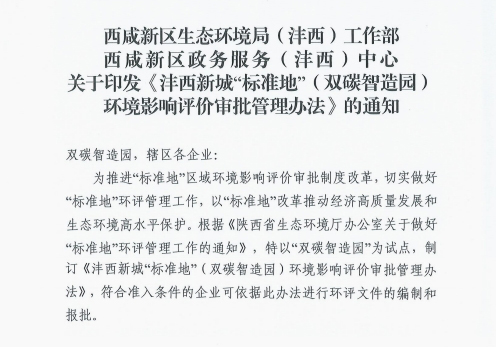 環評是企業在項目開工建設前必須履行的手續,從委托市場中介編制報告到拿到批復,繁瑣的流程、較長的辦理時間,讓很多企業倍感壓力。今年6月,由灃西投資建設運營的雙碳智造園被選為灃西新城“標準地+區域環評”改革試點園區,面對改革契機,灃西投資解放思想、搶抓機遇,從“等企業辦理”到“送服務入園”,主動配合行政審批、環保等相關部門為入園企業提供“一站式”環評手續辦理服務,解決企業的“頭痛事”,為企業落戶灃西注入“綠色動能”。