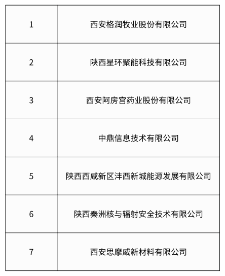 灃西新城納入省級上市后備企業庫的7家企業名單