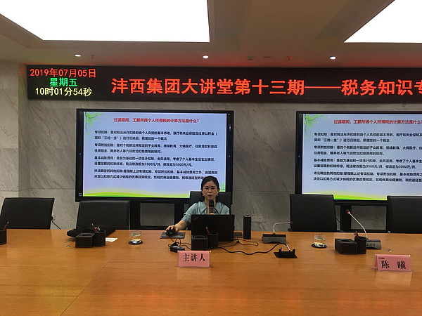 人力資源部及財(cái)務(wù)部聯(lián)合組織召開(kāi)2019年“灃西集團(tuán)大講堂”第十三期——稅務(wù)知識(shí)專題培訓(xùn)。