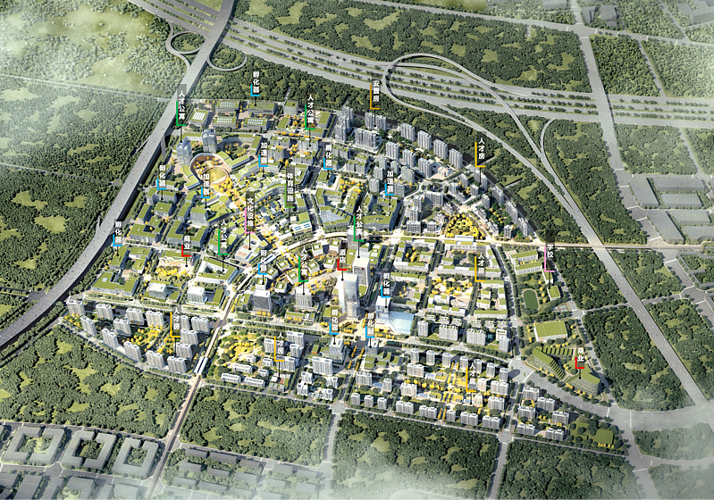 A板塊規劃設計對標雄安新區,通過貫徹小鎮形態、山水林田湖草、小路密網、龜背式地形、全域海綿、明溝排水、新型能源、公交優先、TOD模式、智慧健康園區、地下整體開發、圍合式建筑、綠色低碳建筑等特色開發理念,應用建筑垃圾再生利用、中水灰水利用、裝配式建筑等新技術,建設城市特色突出、創新驅動強勁、綠色低碳鮮明、綜合治理先進的絲路城、科學城、公園城、智慧城,打造滿足人民幸福生活需求的未來城市典范。