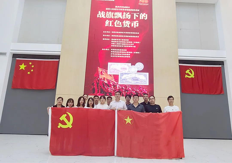 為進(jìn)一步傳承紅色基因,追溯紅色記憶,從經(jīng)濟(jì)金融領(lǐng)域感受黨領(lǐng)導(dǎo)全國人民艱苦奮斗的光輝歷程,推進(jìn)黨史學(xué)習(xí)教育走深走實(shí),6月29日至6月30日,灃西集團(tuán)組織黨員干部員工赴灃西新城規(guī)劃展覽館參觀“戰(zhàn)旗飄揚(yáng)下的紅色貨幣”主題展覽。集團(tuán)黨委書記、董事長楊建柱,總經(jīng)理姜勤發(fā)和其他在家班子成員,全體中層干部參加。 同時,部分黨支部積極組織本支部黨員參觀主題展覽。