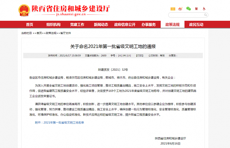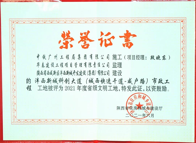 近日,陜西省住房和城鄉(xiāng)建設(shè)廳發(fā)布了《關(guān)于命名2021年第一批省級文明工地的通報(bào)》,由灃西集團(tuán)建設(shè)的科創(chuàng)大道市政工程項(xiàng)目榮獲省級文明工地稱號。