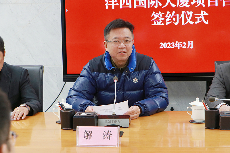 2月9日上午,灃西集團(tuán)置業(yè)公司與居然之家和泰商業(yè)管理公司就居然之家灃西國際大廈項目簽署合作協(xié)議。居然之家集團(tuán)副總裁解濤,居然之家和泰商業(yè)管理公司總經(jīng)理蘆海鵬,灃西新城黨委委員、管委會副主任唐穎,集團(tuán)公司黨委書記、董事長楊建柱出席并講話。