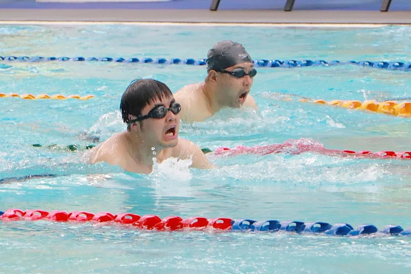 泳池賽道內(nèi)你追我趕,蛙泳、自由泳輪番上演,隨著浪花翻滾,展現(xiàn)著速度與激情。在最后的沖刺階段,參賽選手們紛紛火力全開(kāi),用拼搏的信念一次次沖擊著體能的極限,一遍遍刷新著自己的最好成績(jī)。