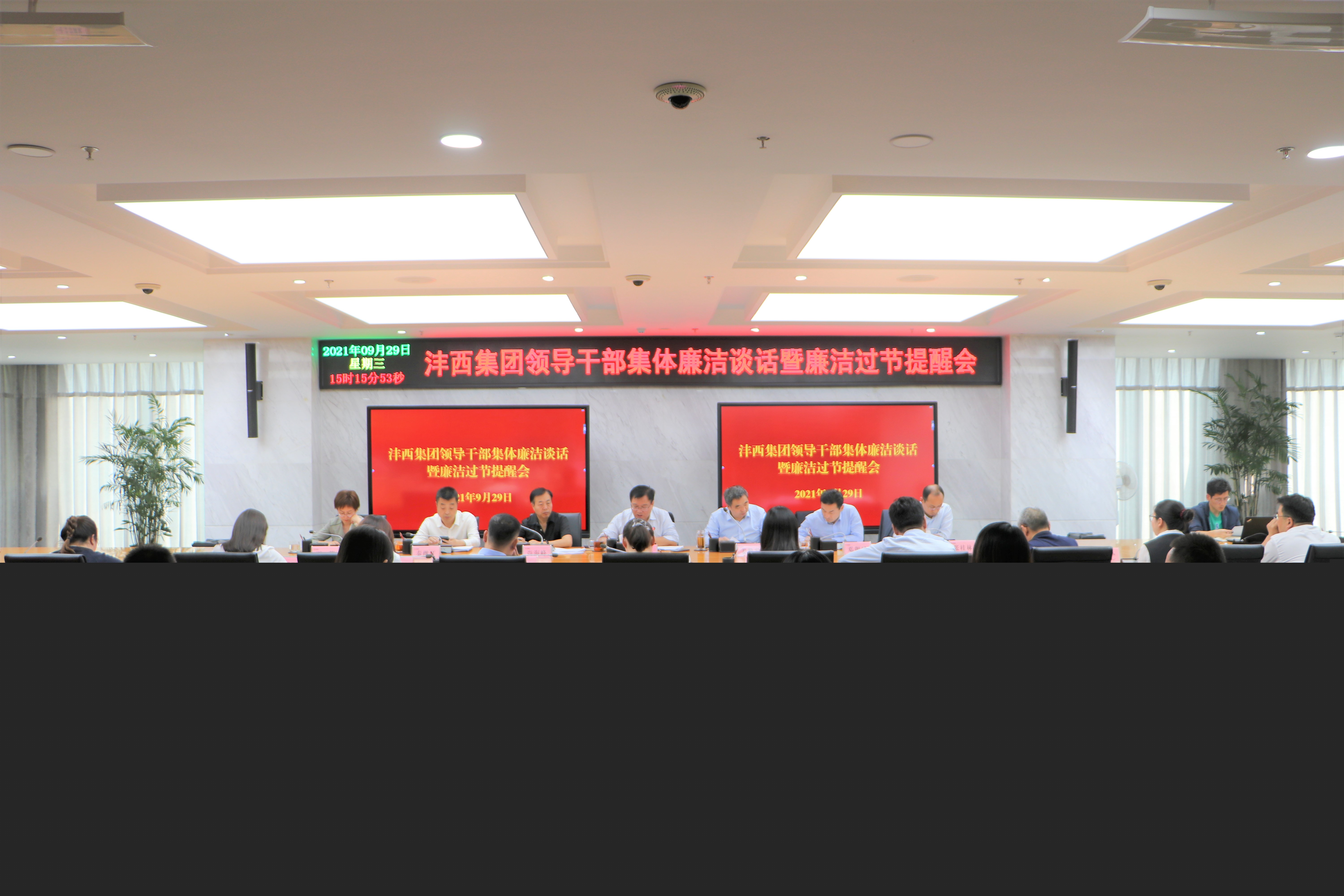 9月29日灃西集團召開集體廉潔談話暨廉潔過節提醒會,黨委書記、董事長楊建柱出席會議并講話,總經理姜勤發主持,其他在家班子成員參加。會議學習了近期上級紀檢監察機關通報的違反中央八項規定精神和“四風”問題典型案例、中央紀委國家監委在響水特別重大爆炸事故發生后徹查問題推動整改情況,部分部門、子公司主要負責人匯報本單位黨風廉政建設主體責任和個人“...