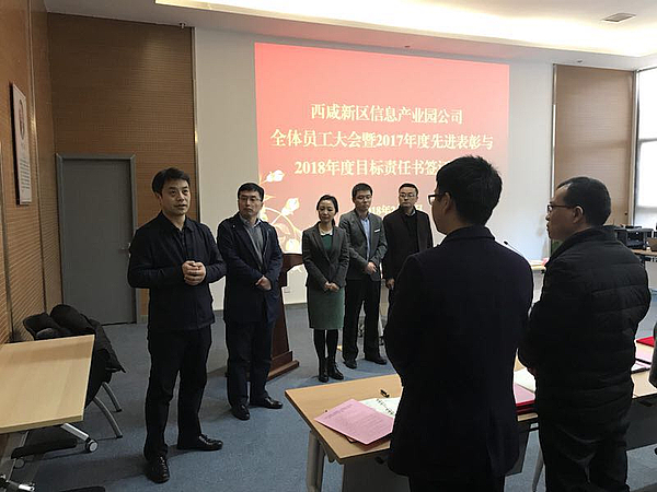 2月22日下午,信息產業園公司舉行全體員工大會暨2017年先進表彰與2018年度目標責任書簽訂儀式。